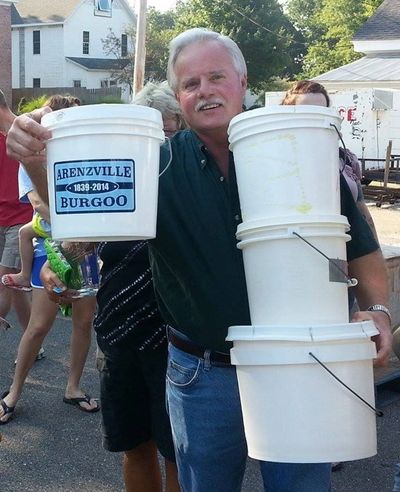 What is kettle service? At the Arenzville Burgoo, as soon as the soup is ready, usually in the morning around 7:00 a.m., it is sold in larger quantities to persons who want to take it home to feed a whole family, or perhaps freeze it to eat during the cold winter months. It's steaming hot when it is ladled into containers, so if you want to buy a large supply, come prepared to handle a hot container (newspapers around the container, placed in a cardboard box, usually do the trick). Most people bring their own containers (gallon jugs, glass jars, etc.), but these can also be purchased at the kettle service table.